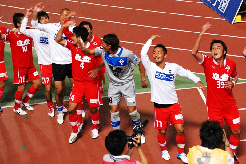 主審の笛が鳴り響いたと同時に、平塚競技場はシーーーーンと静まってしまいました。拾いスタジアムの一角に陣取った数十人の熊本サポだけが、関東初ゴール初勝利お祭り騒ぎでボルテージアップ。