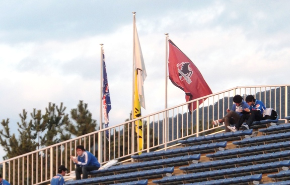これが大音響でけたたましくて! NDスタのアウェーの洗礼はこれだった(^^;)