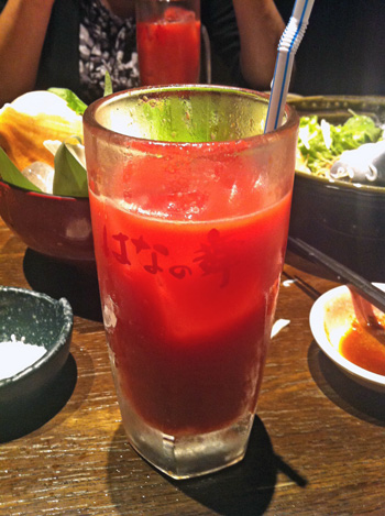アルコールは控えて真っ赤なオレンジジュースで勝利を祈願。