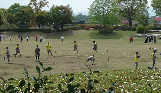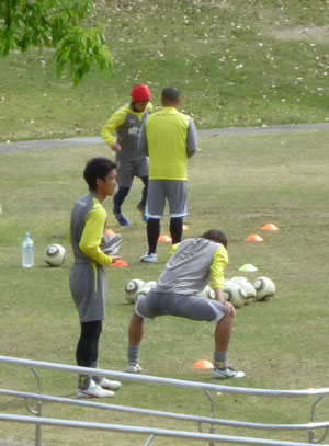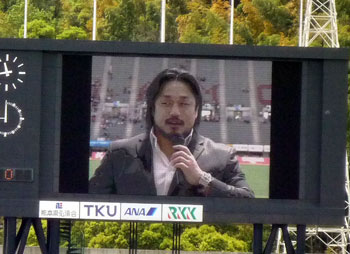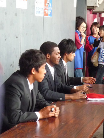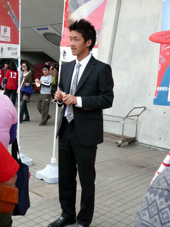 スタジアム前広場で控え選手がきたわれておりました。
