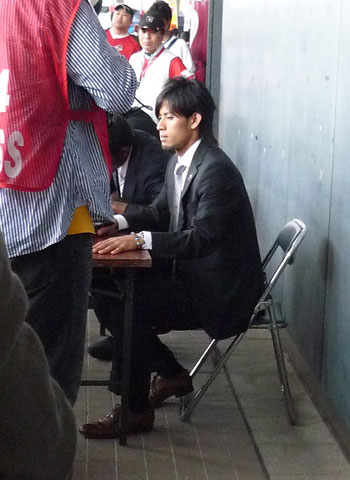 岐阜戦のときにトレユニに革靴かい!と笑ってましたが、どうやら今シーズンはコンコースでは正装が基本みたいですね。