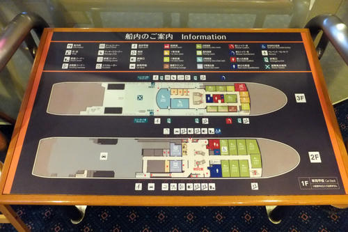 午前4時過ぎてようやく乗船。駐車エリアから客室へはエスカレーター。