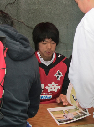三々五々という感じで選手がテーブルにつくと殺到するでもなくふつうに並ぶファンの行列。