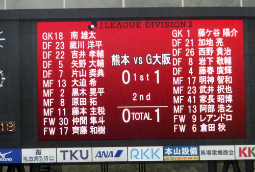 去年までのロアッソだと前半に2失点したら「もう取られないよね」という不安が過ぎる後半だけど、今日の赤馬衆はガンバに2点取られても何かやってくれそうな勢いが、この時点ですでにありました。
