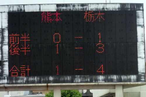 えー。何マッチだかよくわかりません。早くなんとかしてほしい電光掲示板。ほんとにアウェーの皆さんに対して失礼だし恥ずかしいんだから!