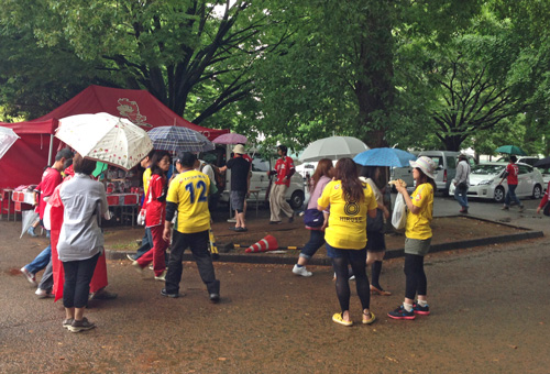 この日はなんとジュビロ磐田のサポーターさんが大きくて真っ赤な横断幕を持参して来られていました。
