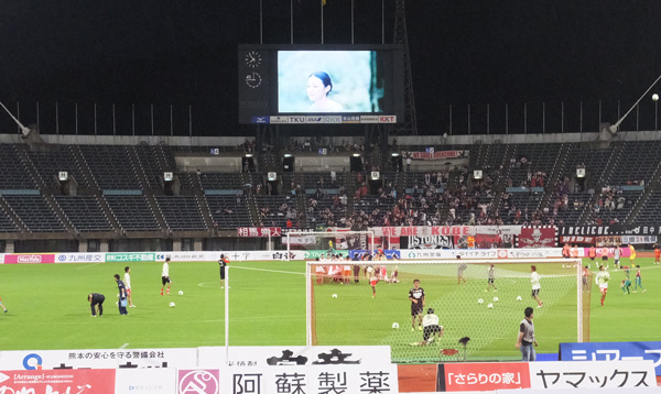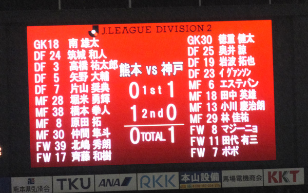 向こう側で神戸が攻め込み熊本が防戦のまっただ中でひときわ高い主審の笛。