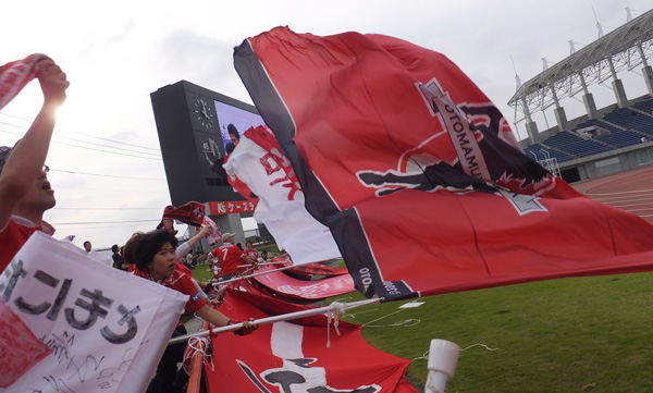 これまた見慣れた光景。アウェーなのにあっという間に周囲を巻き込んでほのぼのムードになってしまうロアッソサポを、ホームチームサポの皆様どうかご容赦くださいね(笑)