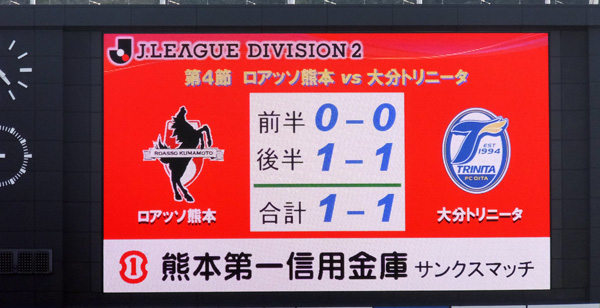 しかし最後の5分で同点打打たれてしまってまたも勝てなかったよー。大分サポさんも「また熊本に勝てなかった」という印象だったとか。