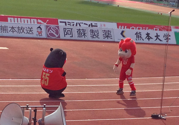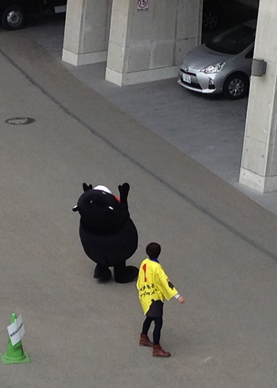 ローラーブレード久しぶりに見た。くまモンがリアクションに困ってるみたいでちょっと可愛かった(^^)