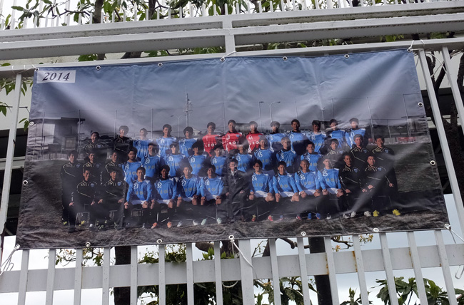通路の柵には歴代シーズン集合写真が。もっとゆっくり見たかったけどこれはホームサポさん向けだもんね。