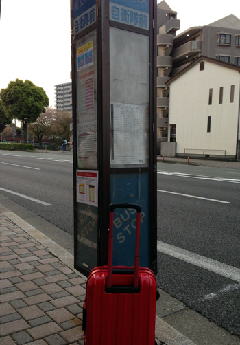 試合当日朝まだき。いつものバス停。いつものロアッソ自販機。いつもの空港から飛びました。
