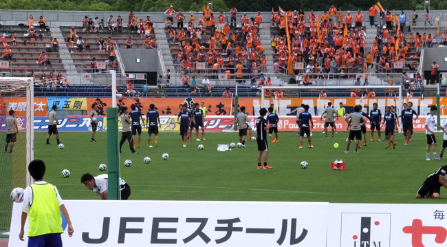 愛媛の練習風景が映ったとたん熊本ゴール裏サポ一斉に見上げてキャーキャー。勝負は勝負。ゴメちゃんはゴメちゃん。