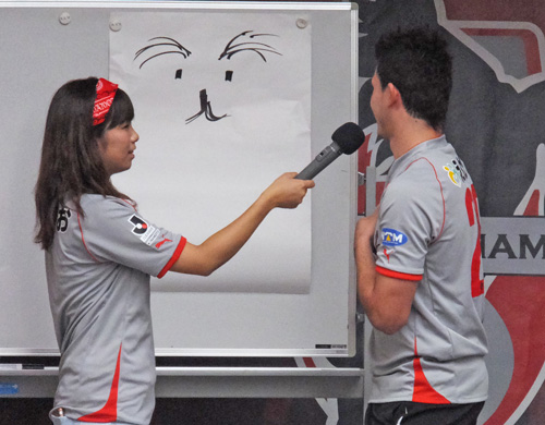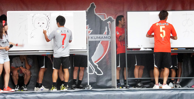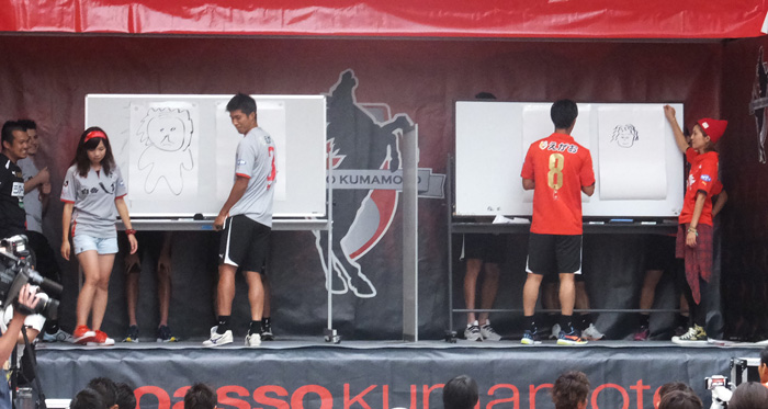 まず絵心対決。すっかりファン感の風物詩。またこの子供のラクガキみたいなのでTシャツ作っちゃうのかね。