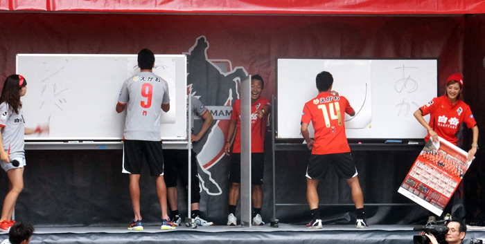 前日のみっともない大敗後、ゴール裏から昨年も聞かなかったような大ブーイング浴びた選手全員がファンサービスするから来てね〜という、世にも皮肉なファン感です。