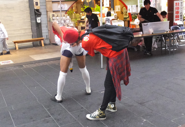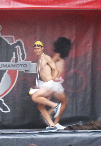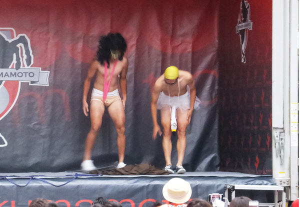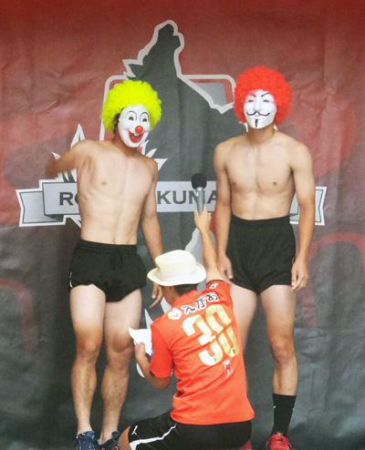 お面で最後まで誰だかわからなかったけど。黄色い方がタイシンくんで赤い方がダイちゃん。出てきた瞬間「ふともも真っ白(笑)」という声がざわざわと。観客席の視線を釘付けでしたね。