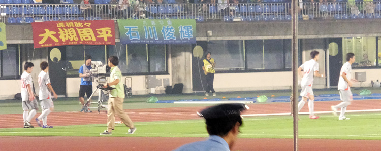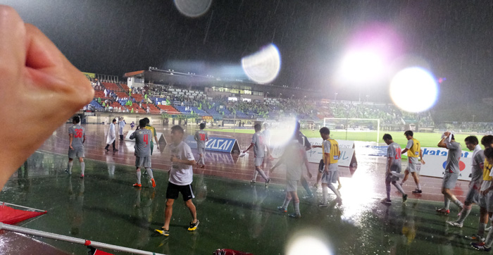 試合後半の後半くらいから、雨が落ちてきてすぐに雨風ひどくなり、試合終了の時点で雷鳴が響きだして豪雨になってしまいましたよね。