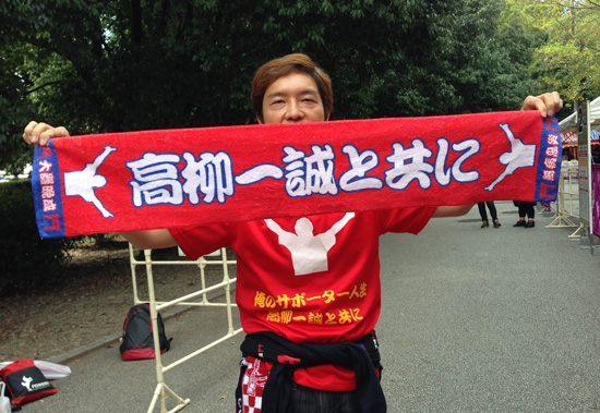ロアッソに所属してるから応援もロアッソ仕様。オンリーワンのタオマフがお見事!