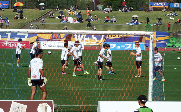ゴール裏が低いスタジアムではシュート練習中はサポーターも気を抜く出ない。これ常識です。カミソリシュートがネット逸れたら確実に客席に飛び込むのです。