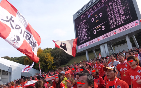 向こう側で誰がゴールしたのかわからず「熊本オーレ!」歌ってたらメイン側からさざ波のように「クラさんだよ!」「ヨーヘーだって」と聞こえてきて、得点者を知る。その後振り向いたら電光掲示板にデカデカと「得点者・藏川洋平」って出てたのでした。