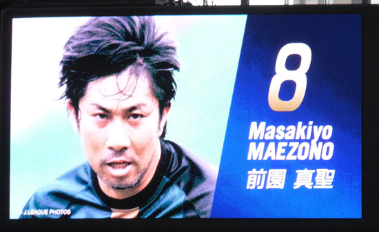 ちょうどホームとアウェーのコーナーサイドに二つ向かい合ってる電光掲示板のおかげで、ここではカラー映像がどこにいてもよく見える。