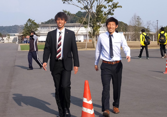 この日は出番がなかったけど、同じく入念に準備運動からランニングの岡山選手と甲斐くんのツーショット。偶然です。