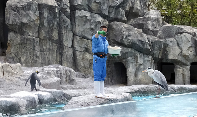 ペンギンのご飯タイムショー。飼育員さんの名調子が楽しい!