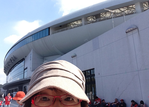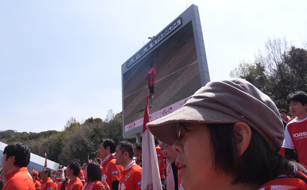 入場してスタグルエリアへ。赤いサポの笑顔の多さを頼もしく思った。