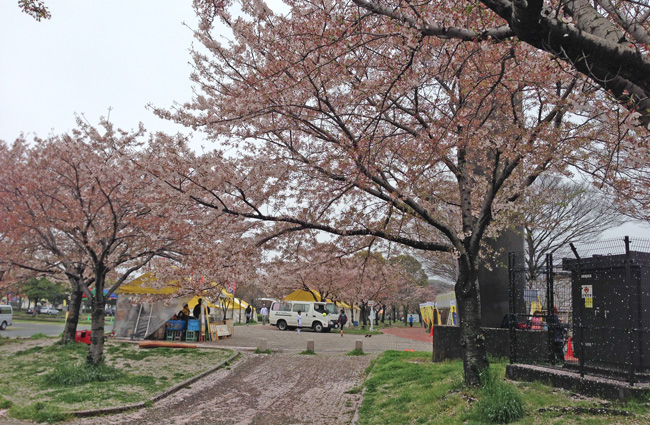 散りかけてはいたけどまだ桜がきれいなスタジアム周り。