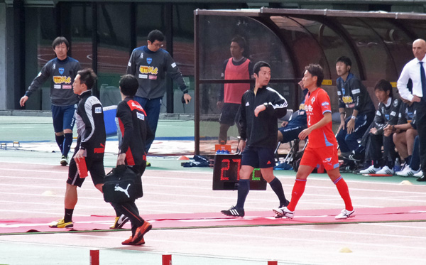 なぜか途中でいきなり横浜FCの選手が生着替え。クラさんのパンツ取り違え以来の光景。