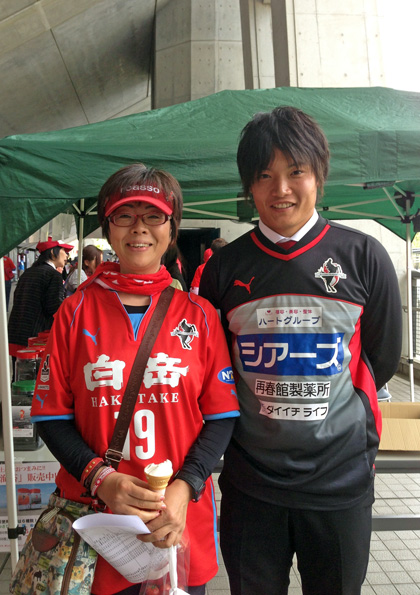 ということでアイス持ったまま背番号19入りユニをアピールするとともに「早くスタメンになって試合に出てくださいね!」と、一番言いたかったことを伝えることができました。