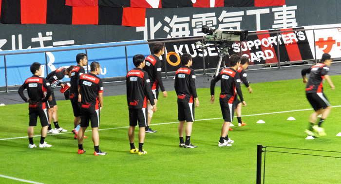 このスタジアムでサッカーやるときは、選手とサポーターの間に深くて長い溝が文字通り横たわっているので、大銀ドームよりも距離がある感じ。