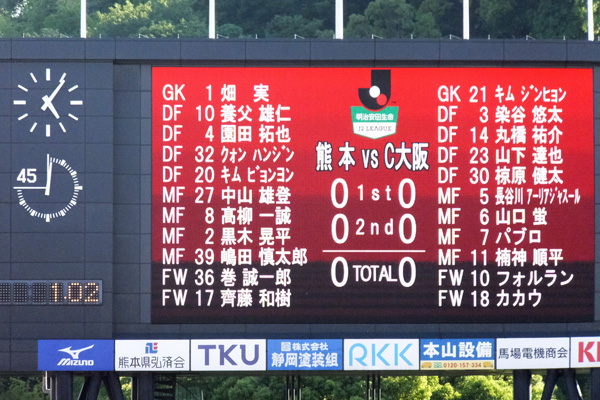 100点満点でまだ10点くらいの試合でした。自分が見たいのはホーム戦勝利のみ。ドローゲームは負けと同レベルです。ただしセレッソをスコアレスに押さえた守備は評価できると思いました。