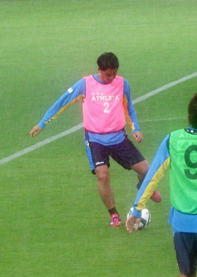 本日のベンチ外メンバーが雨の中スタジアム隣のフィールドで練習中。