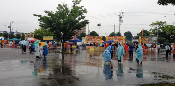 入場と同時にどんどん雨量が多くなり、荷物はビニール二重にくるんで転がしてた。