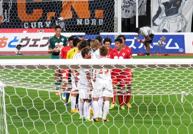 カモンロッソまでこの人の仕切りで始まった。昨年引退した藤本主税ジュニアユース監督ですらゴール裏から勧められて初めてだったのに、いやーたいしたたまげたショーマンシップ。(足怪我してるんじゃなかったっけ?)