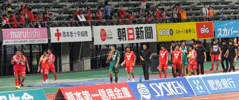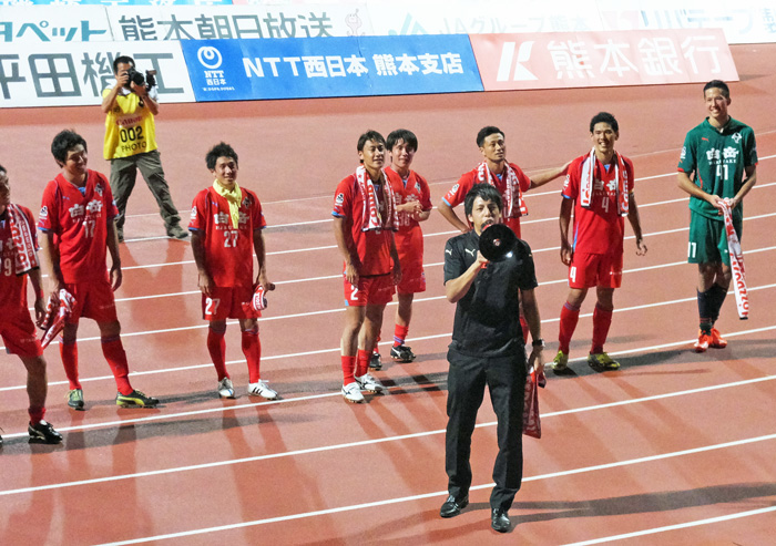 水前寺の勝利だとこれがない。ヒーローインタビューが見られないってのはサポーターにとってめちゃくちゃ味気ないんです。熊本市はそこら辺全然わかってない!