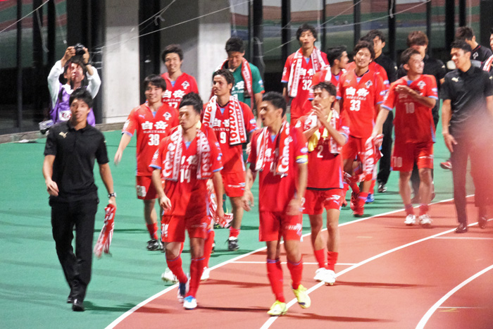 実はスタンドへの挨拶に来るまで、チームもこの勝利をじっくり喜ぶ時間を過ごしていたのでスカパー!の録画ではこのあとのカモンロッソが全部放送されていません。