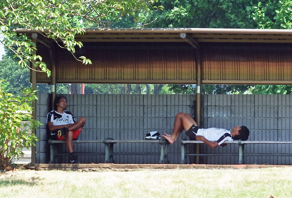 …………仕事終わってこんなところでキヨコーチと二人でまったり涼んでるじゃーん。気持ちよさそう!