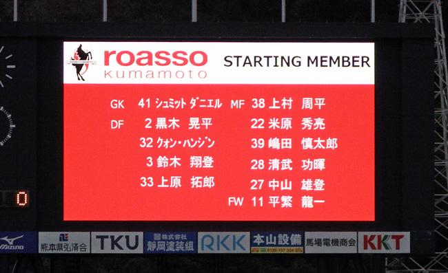 スタメン。ロアッソ熊本