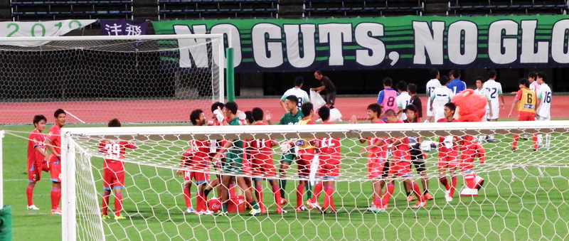 そして誰もが延長をどう戦うんだろうと思い始めた後半終了間際にようやくボールが赤い足元で繋がって、最後はなぜか一番前にスルスル〜っと出てきたシンタロくんが真横から蹴り込んでゴール!
