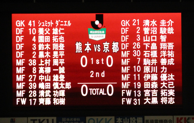 京都も隙あらば攻撃という態勢だけど、こちらも守備は鍛えられつつあるし何しろシュミット・ダニエルがそびえ立っているのでゴールマウスは口を開けない。
