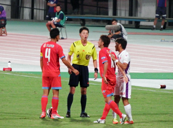 なにしろ京都にはダンくんより1cm長身のFP・フェホくんがいてフィジカルファールの場面で「相変わらず遠近感のおかしい人だなあ」と思って写真撮ったら彼とダンくんの横のシューヘーくんがオッサンと5歳児みたいなことになっていた。