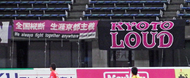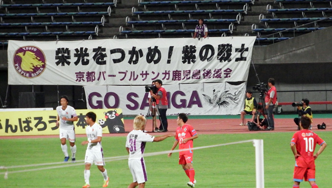 京都ゴール裏の横断幕。鹿児島はセカンドホームだったっけ。