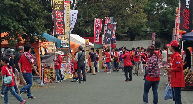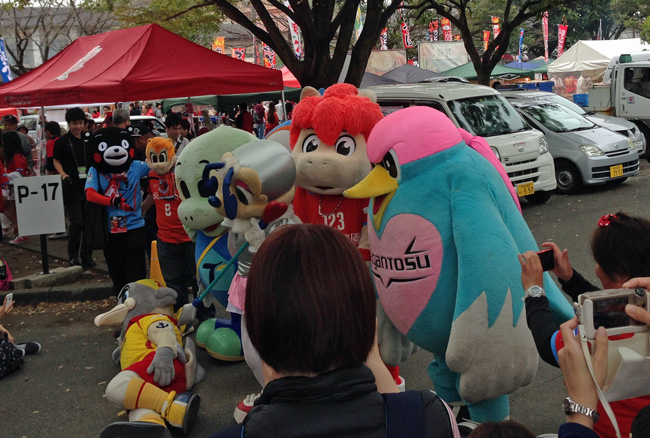 はい水前寺です。九州Jクラブマスコット総出のスタグルメ広場前はずいぶん早くから大賑わいのカオス状態。なんで北九州ユニの人がいるんだろうってナゾはすぐ解けました♪