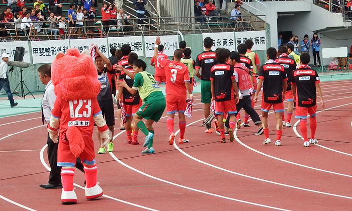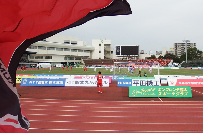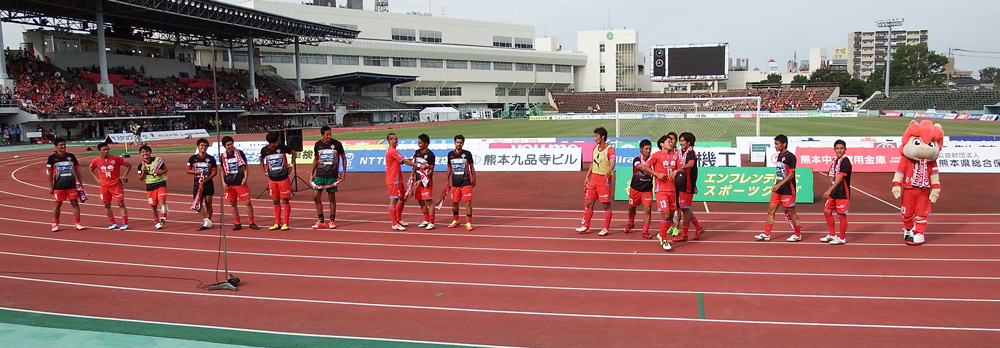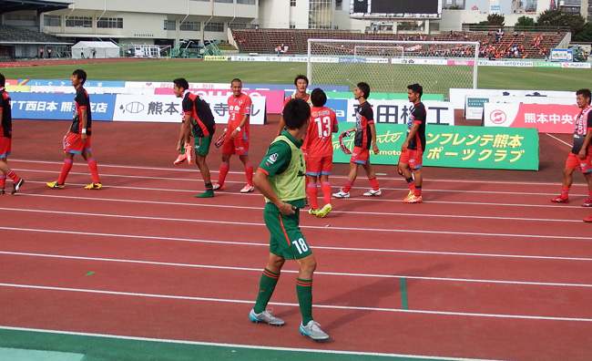 折しも水前寺競技場の隣の野球場では2チームが並んで表彰式が行われていました。どちらが優勝チームかわからないけどこうして名前を呼ばれる場所に、いずれロアッソも立ってほしいものだと思いました。