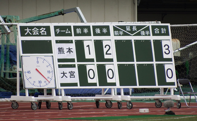 当然、写真なんか撮ってる場合じゃなかったから思い出したように得点ボードを確保。このあと大宮にゴール決められてもこの時間は3-0だった証拠として(笑)