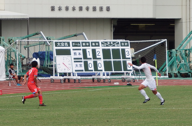 この2点目で目の前の大宮DFエリアに多少のさざ波が立ったように見えました。ふだんの強い大宮なら一枚岩のところが、熊本の選手が入ってくるとほんの少し対応にズレが生じてるような気がしてきて。