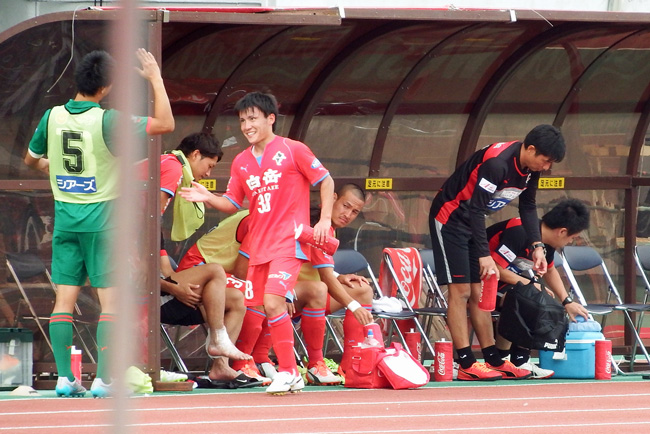 ベンチメンバーにやんやと迎えられるキヨタケくん。