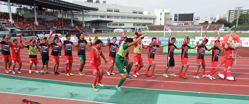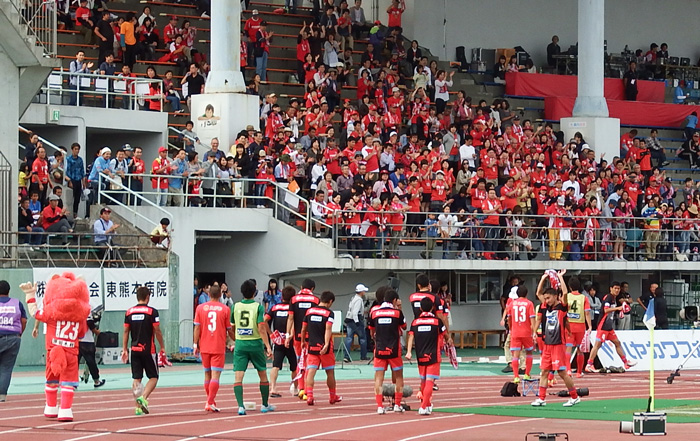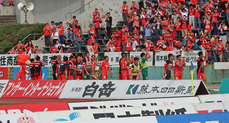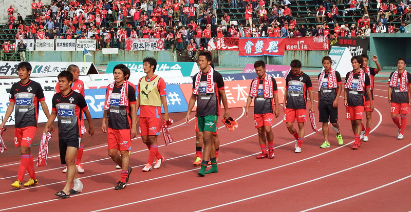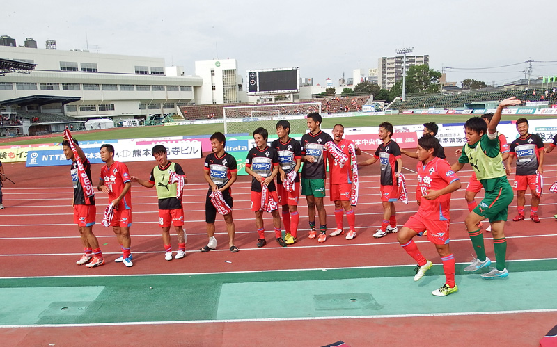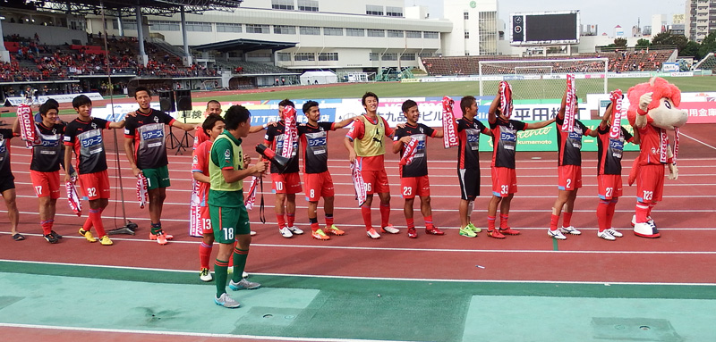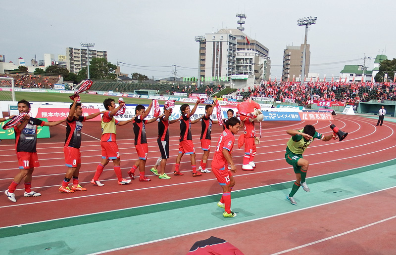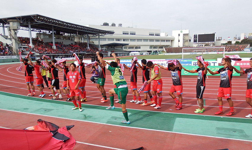 勝ったらカモンロッソするだけだと思ってる人がいるかもしれないけど、ロアッソ熊本の勝利の儀式にはちゃんと起承転結があるのです。楽しいゾ!